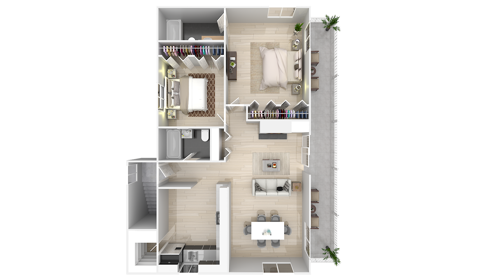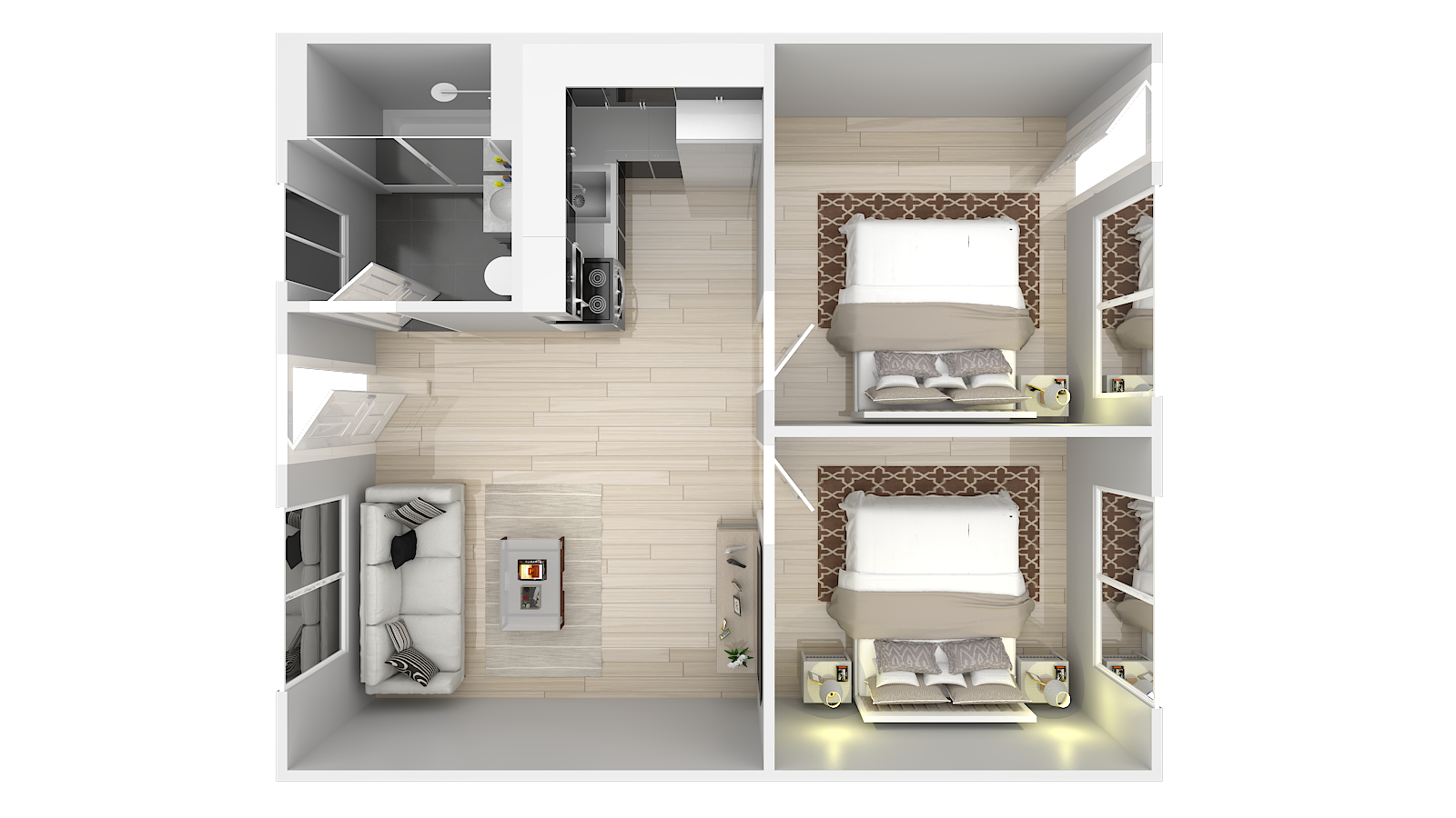 Studio – 2 Beds