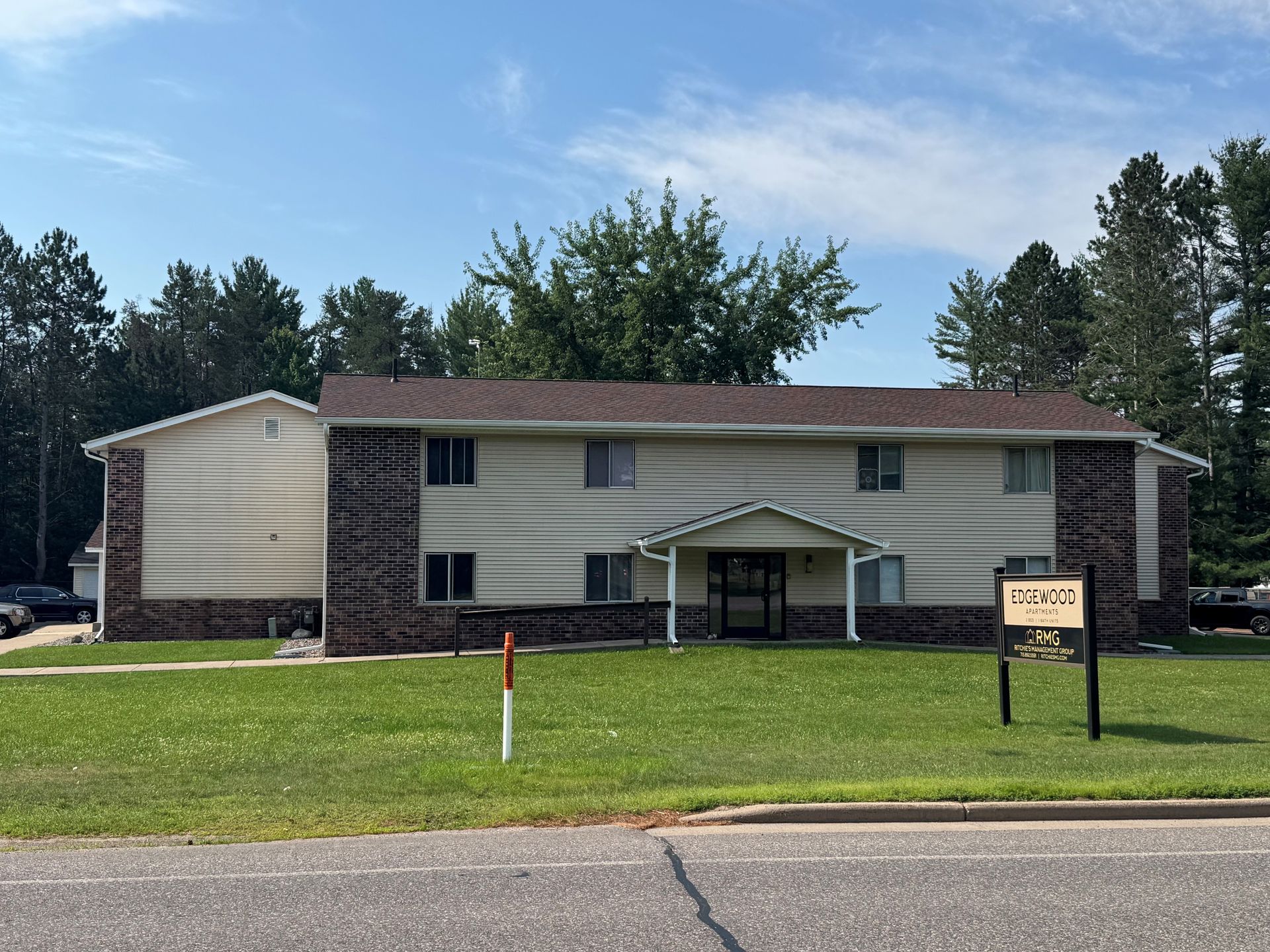 Welcome to Edgewood Apartments, a well-maintained 20-unit community conveniently located in Minocqua, WI. Offering a comfortable and practical residential setting, each two-bedroom apartment features a functional layout with approximately 850 square feet of living space. Residents enjoy private outdoor spaces, with ground-floor units offering patios and second-floor units featuring private balconies. Located just off County Highway J, the property provides easy access to the heart of the "Island City" while maintaining a quiet, professional atmosphere. With on-site storage, optional garage parking, and professional management by Ritchie’s Management Group, Edgewood Apartments is an ideal choice for easy Northwoods living.